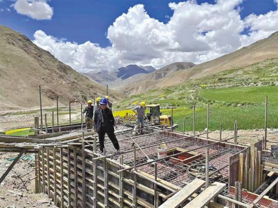施工人員在尼木縣境內(nèi)帕古水庫(kù)施工。