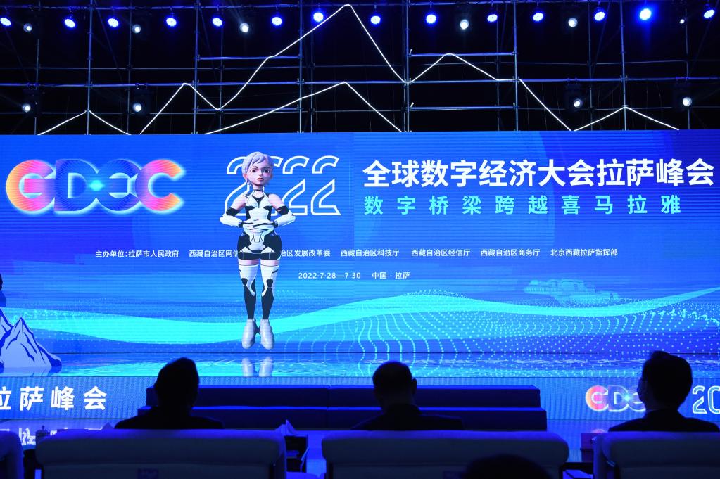 2022全球數(shù)字經(jīng)濟(jì)大會(huì)拉薩峰會(huì)數(shù)字虛擬人“達(dá)瓦”。(新華社發(fā) 旦增努布 攝)