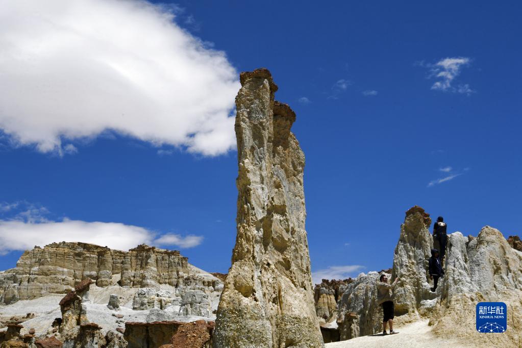 8月3日,游客參觀西藏札達(dá)縣的札達(dá)土林。新華社記者 張汝鋒 攝