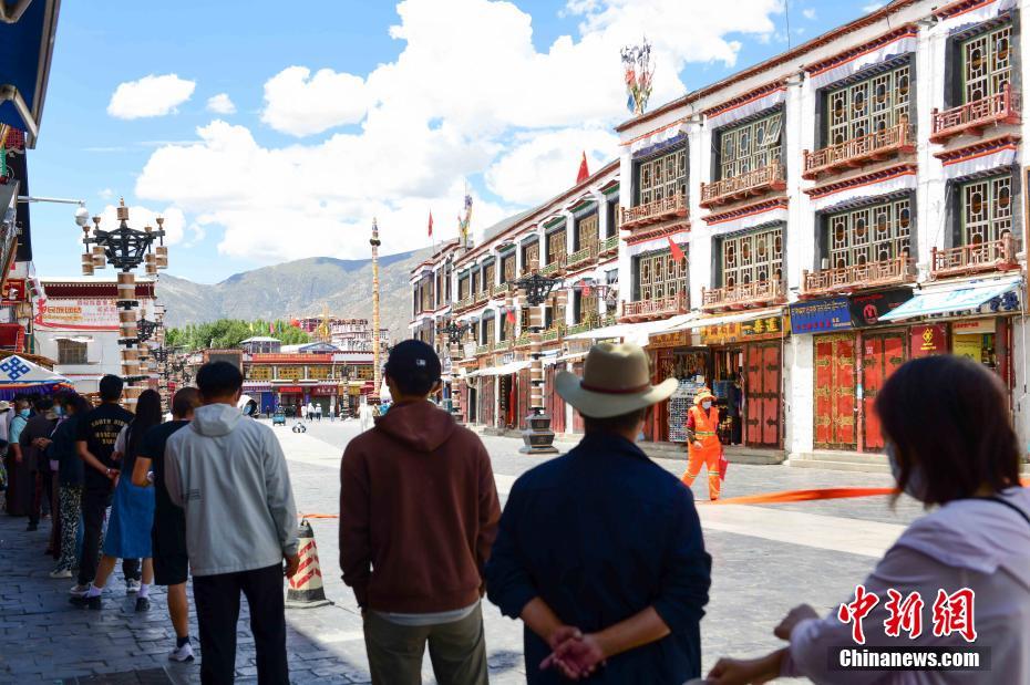 8月9日,西藏拉薩,市民在城關(guān)區(qū)八廓街道的核酸檢測現(xiàn)場排隊進行核酸檢測。當前,西藏拉薩市設置545個核酸檢測點開展全員核酸檢測。 中新社記者 貢嘎來松 攝
