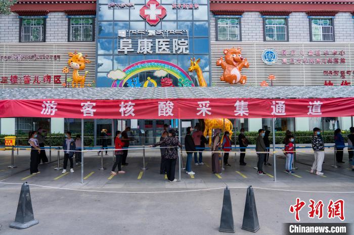圖為西藏阜康醫(yī)院門(mén)口開(kāi)通的游客核酸采樣綠色通道。江飛波 攝