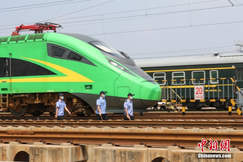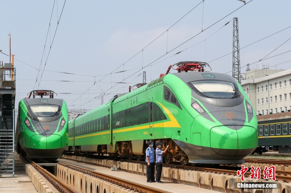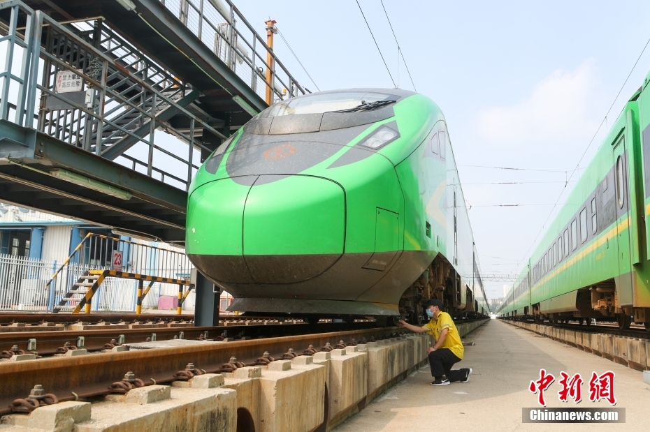 8月17日,北京車輛段西庫檢車間,檢修人員剛剛完成一列時速160公里動力集中型復(fù)興號動車組(俗稱“綠巨人”)的檢修工作。這里是京津冀地區(qū)唯一的“綠巨人”檢修維修基地,肩負著18列共計261節(jié)車輛的檢修任務(wù)。隨著暑運逐漸迎來返校返程高峰,檢修人員也在加班加點為列車做好體檢工作,確保運行安全。 中新社記者 賈天勇 攝