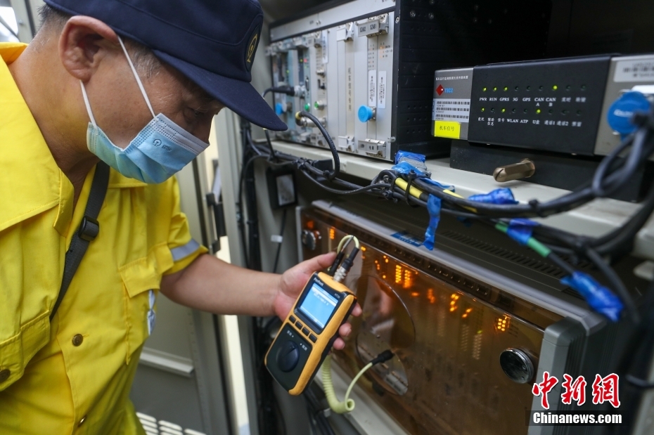 8月17日,北京車輛段北京西庫檢車間內(nèi),北京電務(wù)段檢修人員正在檢查時速160公里動力集中型復(fù)興號動車組(俗稱“綠巨人”)的車上壓力傳感器。這里是京津冀地區(qū)唯一的“綠巨人”檢修維修基地,肩負著18列共計261節(jié)車輛的檢修任務(wù)。隨著暑運逐漸迎來返校返程高峰,檢修人員也在加班加點為列車做好體檢工作,確保運行安全。 中新社記者 賈天勇 攝