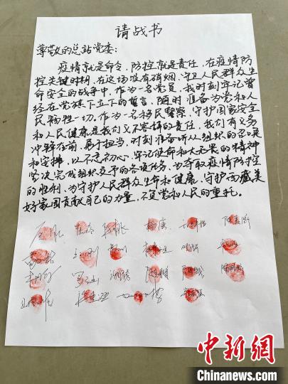 圖為執(zhí)法調(diào)查支隊(duì)民警寫下請(qǐng)戰(zhàn)書,簽名并按手印。陸鑫 攝