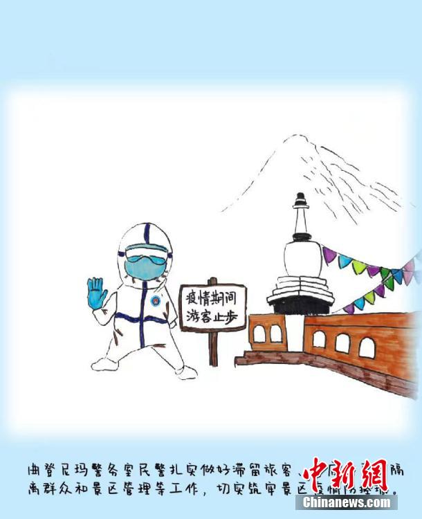 來(lái)自四川省宜賓學(xué)院的沈文靜是西藏日喀則邊境管理支隊(duì)昌龍邊境派出所教導(dǎo)員胡浩的妻子,7月26日來(lái)隊(duì)探親,此后遭遇西藏疫情暴發(fā)。在派出所抗疫期間,沈文靜拿起畫筆,將奮戰(zhàn)在抗疫一線的移民管理警察身影描繪記錄下來(lái),用漫畫的方式生動(dòng)再現(xiàn)西藏移民管理警察的戰(zhàn)“疫”人物群像。沈文靜 繪 龍小鳳 文