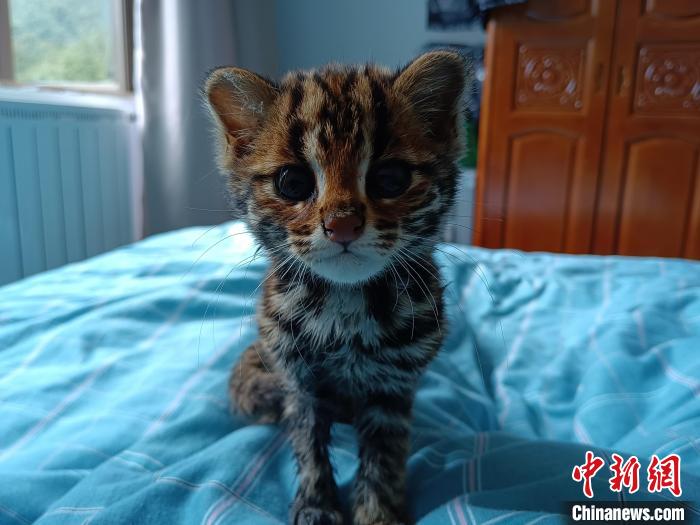 圖為被勒布邊境派出所民警救助的豹貓。 莊冀 攝