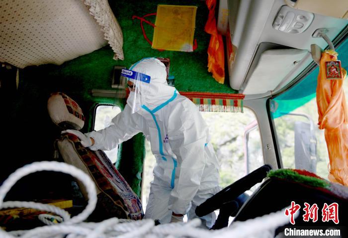 移民管理警察梅凡檢查進入吉隆口岸限定區(qū)域卡口車輛。 肖富貴 攝