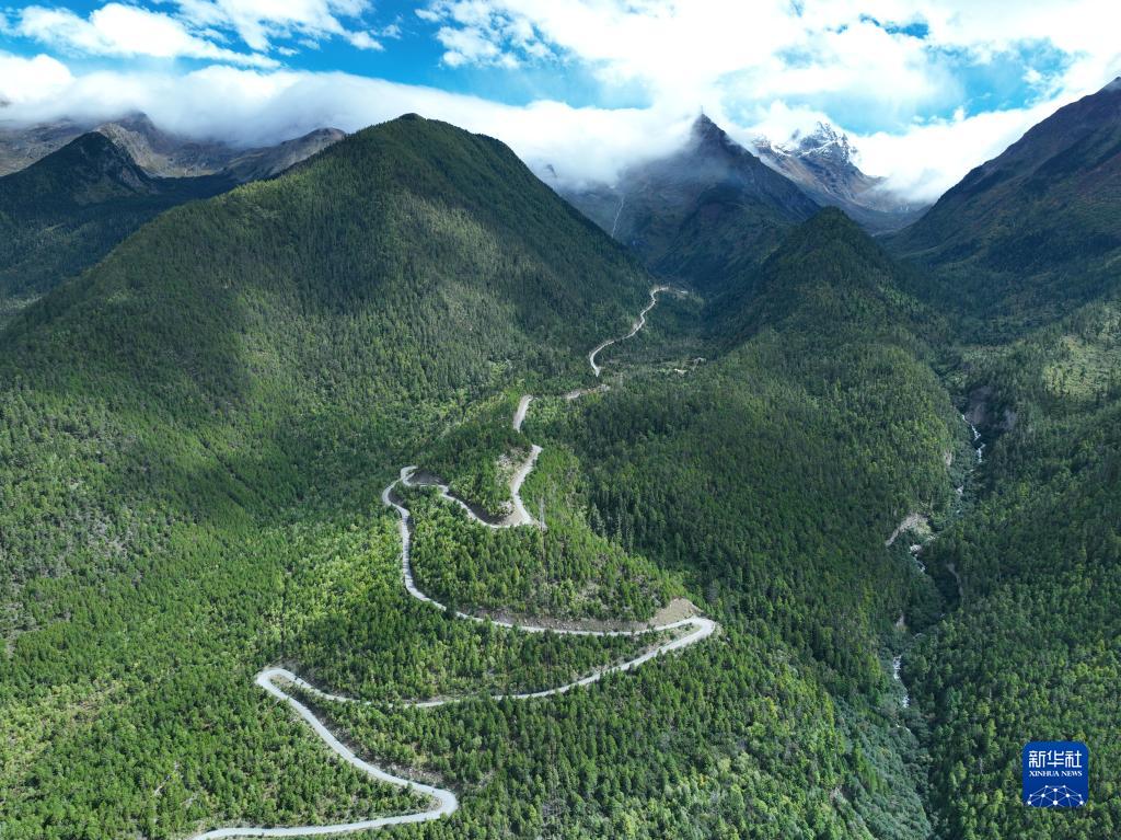 這是2022年9月30日拍攝的派墨公路派鎮(zhèn)起點(diǎn)路段(無人機(jī)照片)。新華社發(fā)(董志雄 攝)