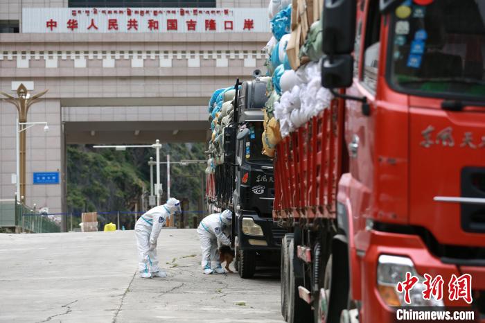 吉隆出入境邊防檢查站移民管理警察檢查車體?!⌒じ毁F 攝