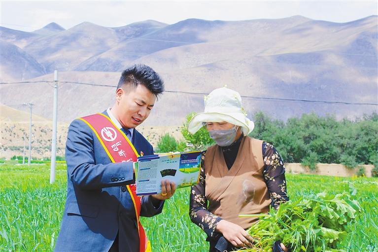 農(nóng)行拉薩分行員工走進(jìn)田間地頭為農(nóng)牧民普及金融知識。