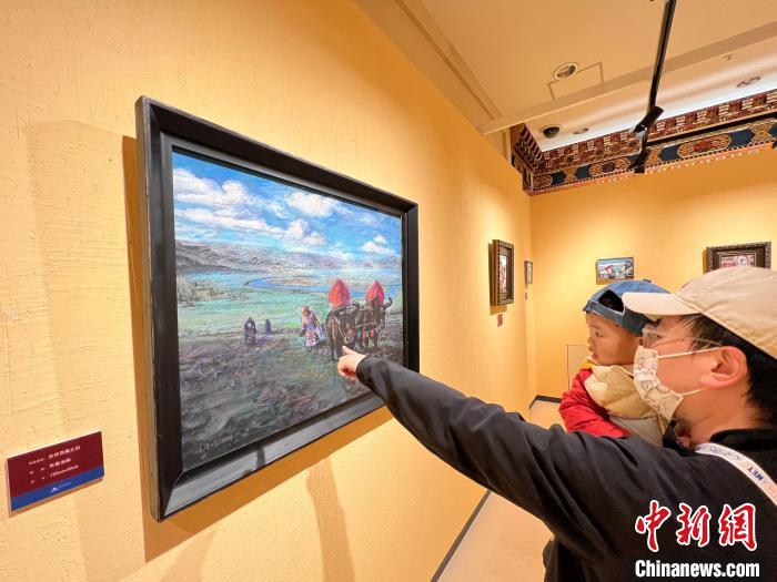 帶兒子一同前來參觀的向先生曾于2013年夏季到西藏旅游。他告訴記者,畫中的風景、建筑和服飾非常寫實;有關(guān)冬季的畫作彌補了他未見西藏冬日美景的遺憾。