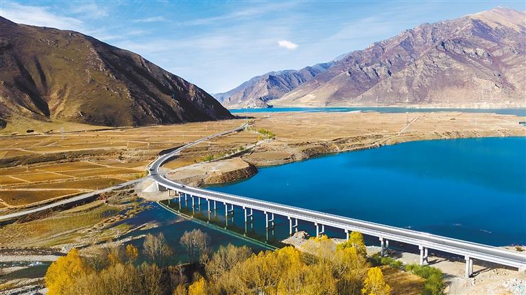 圖為日前拍攝的349國道墨竹工卡縣尼瑪江熱鄉(xiāng)段高架橋。記者 潘多 通訊員 洛克 攝