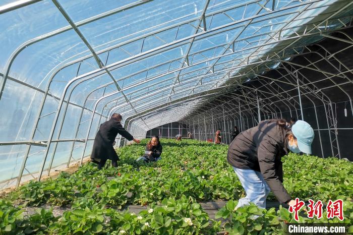 圖為11月11日,西藏日喀則康馬縣薩馬達鄉(xiāng)草莓采摘活動現(xiàn)場?!堄裣椤z
