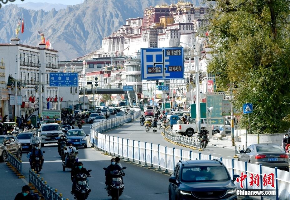 11月17日,拉薩市北京東路車流人流漸多。近日,在拉薩八廓街道、吉日街道、吉崩崗街道等主城區(qū)及市區(qū)主要路段,車流量、人流量逐步恢復。隨著拉薩市新冠肺炎疫情防控形勢持續(xù)向好,各行各業(yè)有序復工復產,民眾生活逐步正常,街頭巷尾的“煙火氣”漸濃。 中新社記者 李林 攝