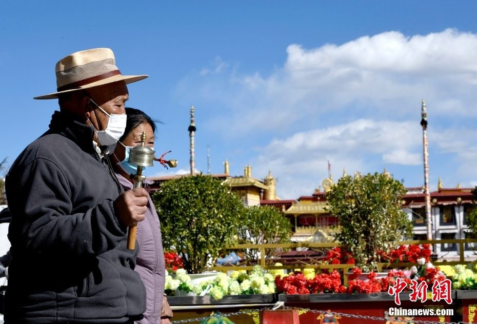 11月17日,拉薩市民在大昭寺外散步。中新社記者 李林 攝