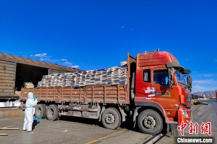 貨物抵達拉薩,正在進行卸貨。拉薩車務(wù)段 供圖