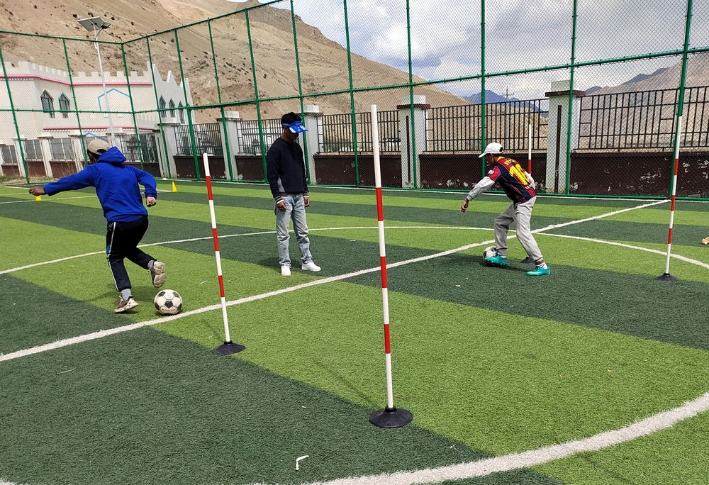 孩子們就在珠峰的陪伴下踢球