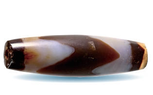 西藏阿里曲踏墓地出土的蝕花瑪瑙珠。中國社會科學院考古研究所、西藏自治區(qū)文物保護研究所供圖
