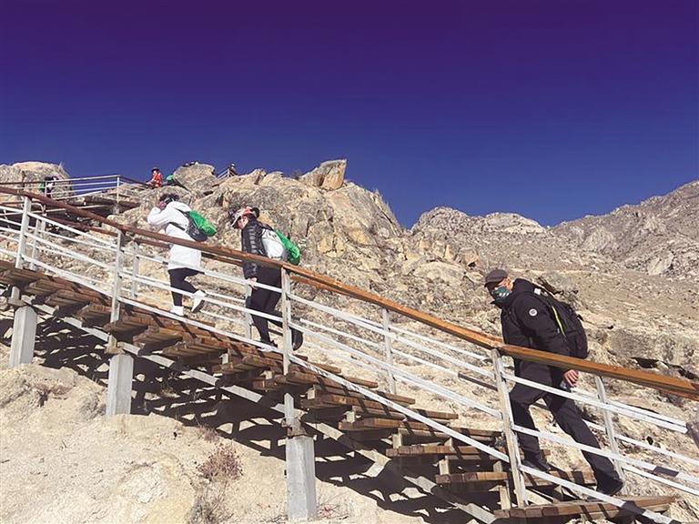 活動(dòng)中,登山群眾不懼冬日寒冷,挑戰(zhàn)每一級臺階,當(dāng)攀登到終點(diǎn)時(shí),大家紛紛合影留念,欣賞重巒疊嶂,俯瞰拉薩全景,許下新年的美好愿望。