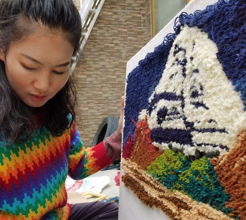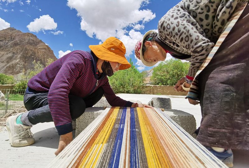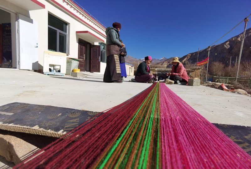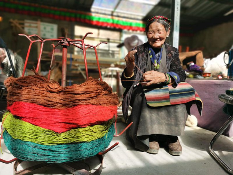 除了賣產(chǎn)品,次仁曲珍也心系十里八村的其他群眾。“我們的原材料(羊毛、羊絨),都是從周邊村子收購的。其實(shí),以前很多老百姓家的羊毛要么自用,要么送人,幾乎很少出售?,F(xiàn)在他們可以送到我這里,市場(chǎng)價(jià)7元—10元/斤。”古老的紡織技藝與珍稀羊毛(絨)材質(zhì)融合,是每一位阿佳用心編織的直抵人們內(nèi)心深處的柔軟,更是她們的五彩夢(mèng)想。