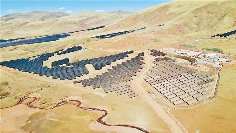 日前,昌都市保供重點項目江達索日光伏電站并網(wǎng)發(fā)電。該項目位于海拔4000米的昌都市江達縣青泥洞鄉(xiāng)索日村,年均發(fā)電量8800萬千瓦時,每年節(jié)約標煤2.68萬噸,可有效緩解當?shù)囟居秒姼叻迤陔娏θ笨冢瑸槿罕娚a(chǎn)生活和昌都市經(jīng)濟社會發(fā)展提供安全清潔的電力保障。 圖為索日光伏電站一角(無人機照片)。通訊員 邱云 記者 李梅英 攝