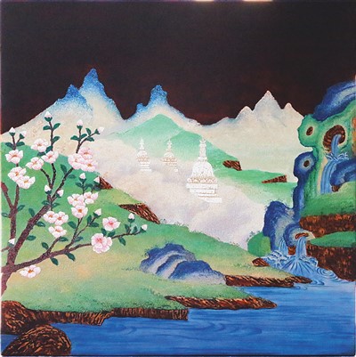 唐卡漆畫作品《白塔桃花風(fēng)景圖》 阿旺曲扎作