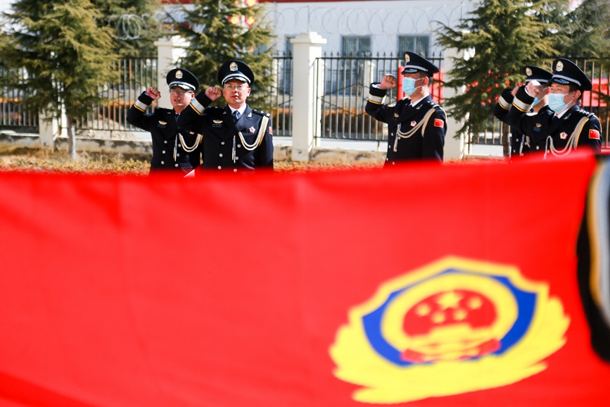 1月9日上午,拉薩鐵路公安處組織迎警旗宣誓儀式,各單位干部民警身著警禮服整齊列隊(duì)、莊嚴(yán)肅立,在雄壯激昂的警歌聲中向警旗莊重敬禮。升旗儀式結(jié)束后,全體干部民警面向警旗,舉起右臂,齊聲宣誓中國(guó)人民警察誓詞,夯實(shí)獻(xiàn)身于拉鐵公安事業(yè)的堅(jiān)定決心。
