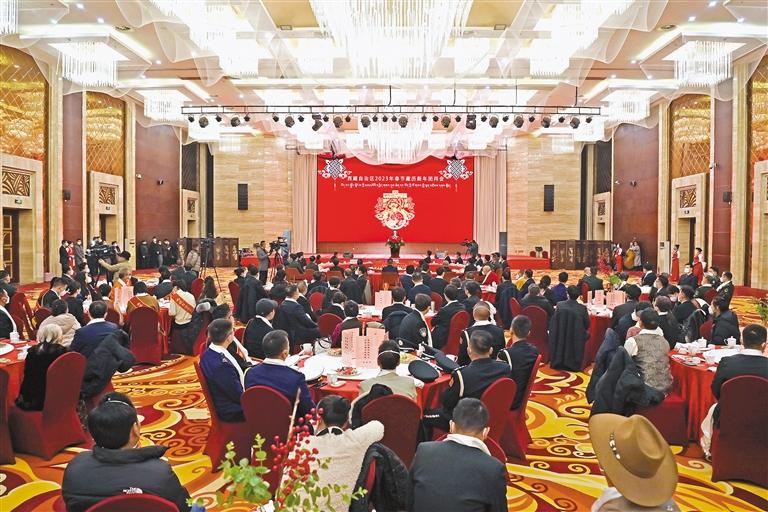 1月17日下午,西藏自治區(qū)2023年春節(jié)、藏歷新年團(tuán)拜會(huì)在拉薩舉行,自治區(qū)黨政軍領(lǐng)導(dǎo)與各族各界人士歡聚一堂。 旦增西旦 攝