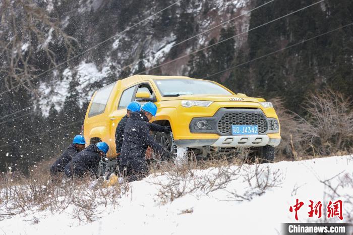 盤山公路上,積雪和暗冰使車輛打滑無法繼續(xù)前行,羅布頓珠和隊友只好下車,給車輛掛好防滑鏈繼續(xù)前行,原本兩個小時的車程,這次花了4個小時才抵達(dá)巡線點(diǎn)。