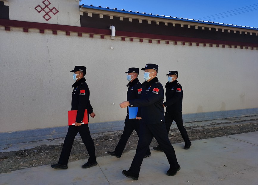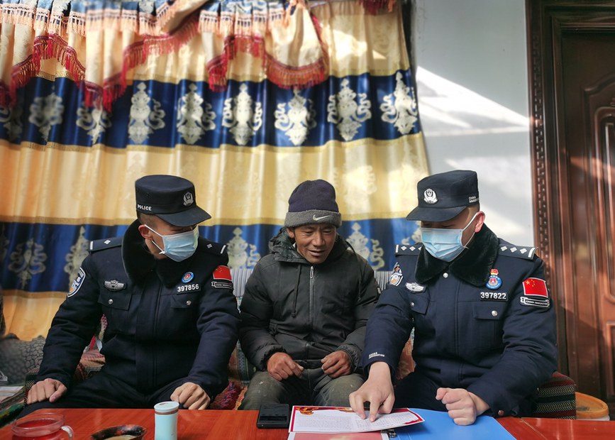 圖為普瑪江塘邊境派出所民警開展群眾走訪工作。洛桑曲扎攝