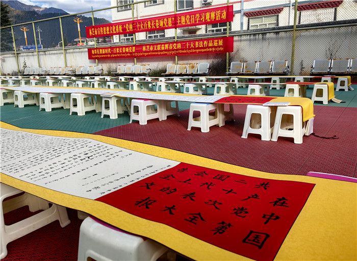 創(chuàng)新載體,全方位宣傳。林芝市統(tǒng)籌各類宣傳資源,線上線下同頻共振,全方位、多角度、寬領(lǐng)域、深層次宣傳黨的二十大精神和區(qū)黨委十屆三次全會(huì)、市委二屆三次全會(huì)精神,營(yíng)造學(xué)習(xí)宣傳的濃厚氛圍。一是新聞宣傳強(qiáng)信心。林芝報(bào)、林芝廣播電視臺(tái)、西藏林芝網(wǎng)、微林芝等市屬主流媒體紛紛開設(shè)《學(xué)習(xí)貫徹黨的二十大》《新時(shí)代新征程新偉業(yè)》等多個(gè)專題專欄,持續(xù)推出學(xué)習(xí)貫徹黨的二十大精神相關(guān)報(bào)道。截至目前,共刊播《基層宣講員讓黨的二十大精神翩翩飛入百姓家》《軍民共話美好未來 繪就美麗鄉(xiāng)村新畫卷》等相關(guān)新聞2500余條。二是社會(huì)面宣傳筑同心。采取“屏、板、欄、幅”立體宣傳方式,在全市各級(jí)黨政機(jī)關(guān)和企事業(yè)單位大門LED電子顯示屏以及市、縣城區(qū)主要街道、跨街龍門、出租車頂燈、汽車站等公共場(chǎng)所的宣傳媒介上滾動(dòng)播放自治區(qū)統(tǒng)一印發(fā)的宣傳標(biāo)語1.2萬余條次,更新懸掛國(guó)旗3.5萬余面,制作發(fā)放宣傳海報(bào)1.5萬張、宣傳品2500余個(gè),形成抬頭可見、隨處可學(xué)的濃厚社會(huì)氛圍。察隅縣上察隅鎮(zhèn)遲巴村村“兩委”和駐村工作隊(duì)用彩色粉筆繪制黨的二十大、“新黨章”等主題黑板報(bào),用畫筆向村民傳遞黨的最新政策,深受群眾喜愛。三是網(wǎng)絡(luò)宣傳聚民心。充分發(fā)揮新媒體平臺(tái)宣傳形式豐富的特點(diǎn),持續(xù)推送重磅報(bào)道和重點(diǎn)文章,策劃打造一批融媒體產(chǎn)品,在全網(wǎng)迅速興起學(xué)習(xí)宣傳貫徹會(huì)議精神熱潮。市委網(wǎng)信辦策劃制作短視頻《學(xué)習(xí)黨的二十大精神 談心得感悟》、“林芝融媒”抖音號(hào)推出《二十大時(shí)光》微視頻,將鏡頭對(duì)準(zhǔn)二十大代表、基層黨員群眾,展現(xiàn)全市干部群眾積極向上的良好風(fēng)貌?!鞍鸵巳诿健倍兑籼?hào)推出“黨的二十大精神快問快答”系列活動(dòng),線上線下聯(lián)動(dòng)學(xué)習(xí),推動(dòng)黨的二十大精神入腦入心。“察隅融媒”抖音號(hào)策劃開展《鄉(xiāng)村振興正當(dāng)時(shí)》黨的二十大主題抖音直播活動(dòng),通過網(wǎng)絡(luò)直觀展現(xiàn)新時(shí)代察隅新農(nóng)村、新氣象、新希望。目前已開展7場(chǎng)直播活動(dòng),觀看人數(shù)達(dá)10萬人次。四是文藝宣傳暖人心。充分發(fā)揮市、縣(區(qū))、村三級(jí)文藝文化團(tuán)體作用,組織開展“深入生活 扎根人民”“幸福不忘共產(chǎn)黨 陽光路上夢(mèng)起航”等各類文藝文化活動(dòng),精心打造文藝精品力作,用文藝活動(dòng)、文藝作品溫暖人心。截至目前,各級(jí)文藝演出隊(duì)開展文藝匯演293場(chǎng)次,參與人數(shù)4.2萬余人次;創(chuàng)作推出音樂作品《沐浴幸福》、攝影作品《我和國(guó)旗》、書法美術(shù)作品《建功新時(shí)代 奮進(jìn)新征程》、文學(xué)作品《黨的光輝照萬家》等文藝作品300余個(gè)。波密縣完全小學(xué)在崗云杉林景區(qū)組織開展“學(xué)習(xí)黨的二十大,爭(zhēng)做好少年”采風(fēng)寫生活動(dòng),學(xué)生們以文藝創(chuàng)作的形式學(xué)習(xí)黨的二十大精神,并將學(xué)習(xí)成果轉(zhuǎn)化到作品中。市民族藝術(shù)團(tuán)以深入挖掘歷史文化、講好紅色故事為主題,籌拍了微電影《立定村屹立的紅旗》。市文聯(lián)書法美術(shù)家協(xié)會(huì)理事茹輝春同志,在黨的二十大召開后用行、楷兩種書法形式撰寫了黨的二十大報(bào)告全文書卷,書卷共有八卷,每卷長(zhǎng)30米。市委宣傳部、市文廣局、市文聯(lián)組織市書法美術(shù)家協(xié)會(huì)開展“禮贊二十大·送福進(jìn)萬家”林芝市2023年新春書法美術(shù)家“深入生活 扎根人民”送祝福和采風(fēng)活動(dòng),共開展送春聯(lián)活動(dòng)15場(chǎng)次,送出對(duì)聯(lián)、福字、掛軸、繪畫等作品8950幅(對(duì)),服務(wù)群眾6700余人次。