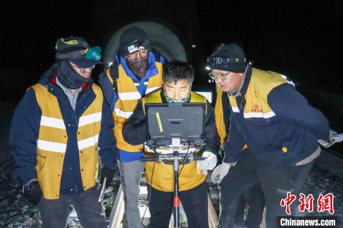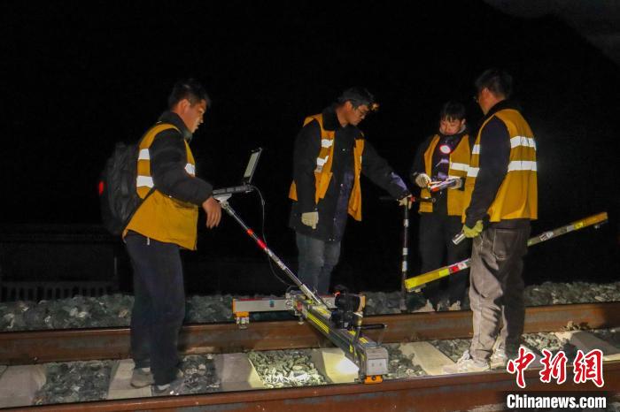 圖為2月9日晚,西藏拉林鐵路設(shè)備檢查作業(yè)現(xiàn)場(chǎng)?!●R生明 攝