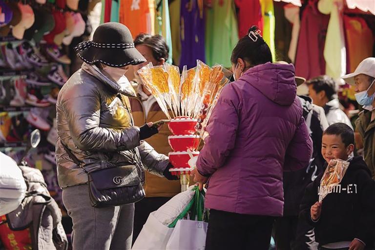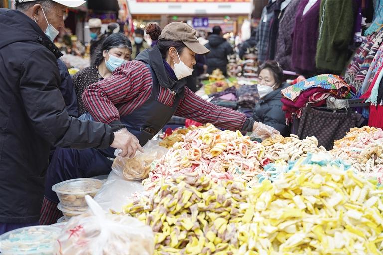 “市場現有1200多家商戶,經營商品有零食、蔬菜、肉類、干雜、五金、服裝等。藏歷新年臨近,每天前來置辦年貨的市民絡繹不絕,日均人流量超1萬。為保證藏歷新年期間年貨充足,市場商戶們提前籌備、積極備貨,目前,各類商品庫存充足、品種豐富,基本上能夠滿足不同消費者的需求。”沖賽康商貿有限公司負責人尼瑪告訴記者。此外,沖賽康市場將于2月19日至27日暫停營業(yè),28日起正常營業(yè)。
