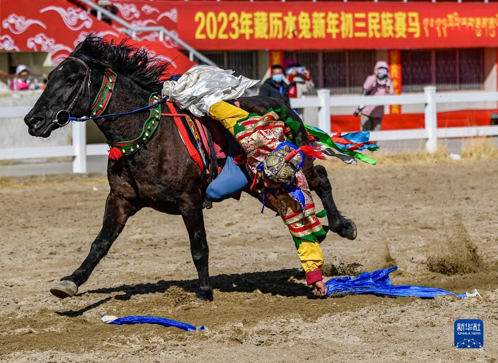 2月23日,在拉薩賽馬場舉辦馬術(shù)表演已成為當?shù)貞c祝新年的傳統(tǒng),深受廣大群眾喜愛。騎手們英姿颯爽,為觀眾們帶來騎馬拾哈達、騎馬射箭等精彩表演。