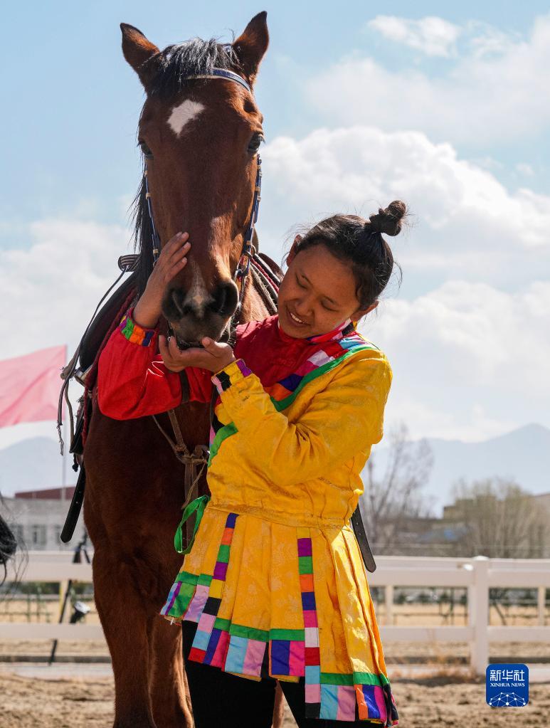 2月23日,騎手在表演前和賽馬互動。新華社發(fā)(丁增尼達 攝)