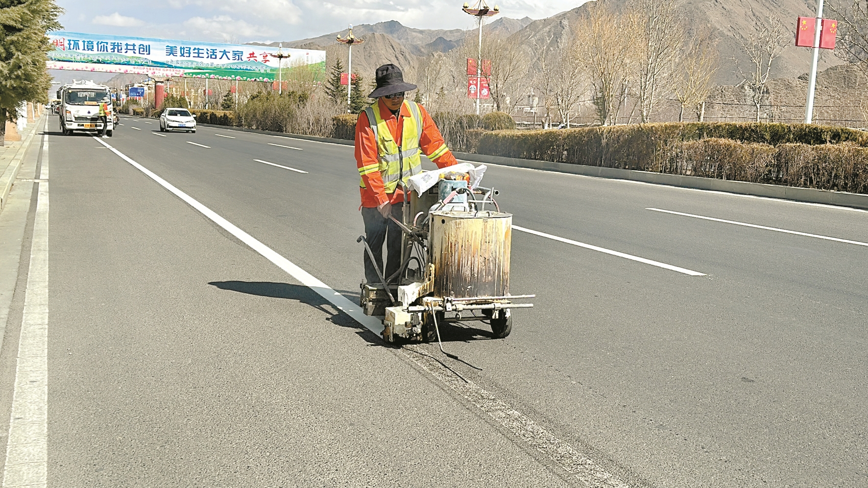 為市民暢通出行“亮線”——西藏拉薩交警重新施劃南環(huán)318沿線交通標(biāo)線