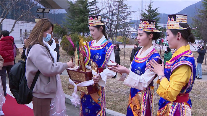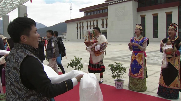 在歡迎儀式上,漂亮的工布姑娘唱起了歌,帥氣的工布小伙端起了香醇的青稞酒,副市長段剛輝為游客們獻(xiàn)上潔白的哈達(dá),對遠(yuǎn)道而來的客人表示熱烈的歡迎和誠摯的祝福,并在致辭中向游客們介紹了林芝的自然風(fēng)光和民俗文化。