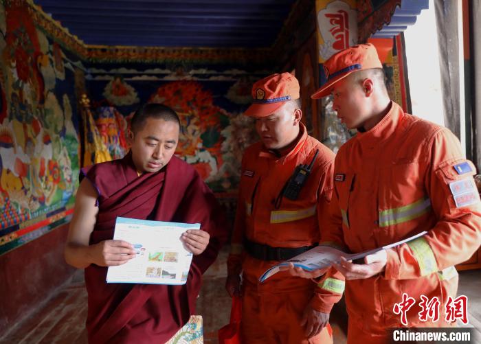 “景區(qū)內(nèi)的宗教寺廟木質(zhì)結(jié)構(gòu)比較多,周圍森林資源豐富,平時(shí)要注意用火安全,防止火災(zāi)發(fā)生。”這是林芝市森林支隊(duì)消防員正在為德木寺景區(qū)工作人員和僧人宣傳森林消防安全常識(shí)。