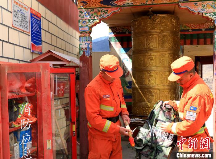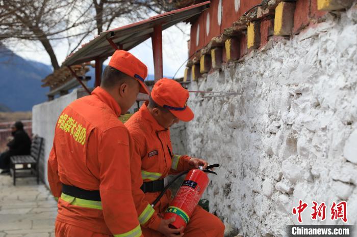 森林消防隊(duì)員檢查寺廟防火設(shè)施?!∥骼@拉翁 攝