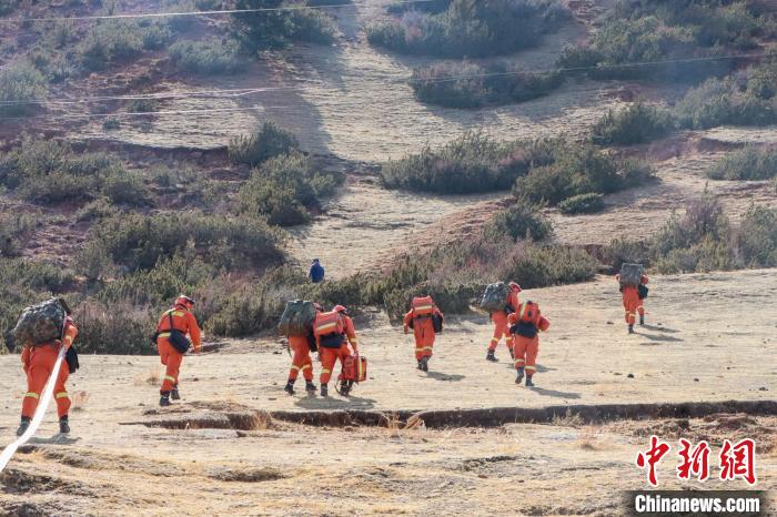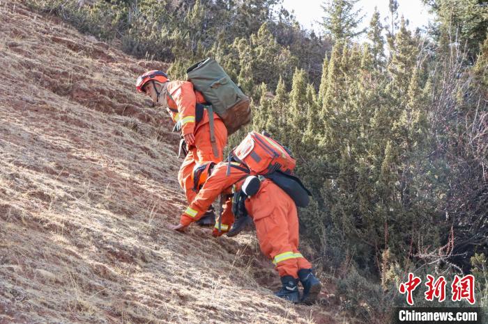 消防員正在向山頂攀登。 姚天銳 攝