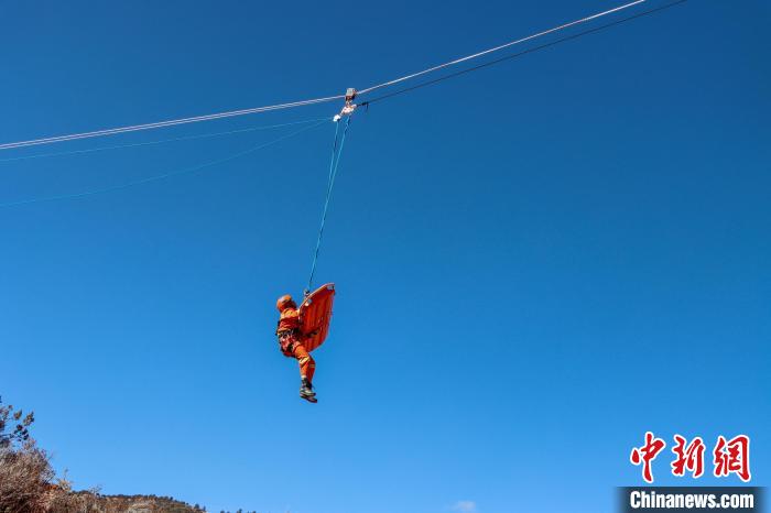 圖為考核繩索救援?!∫μ熹J 攝