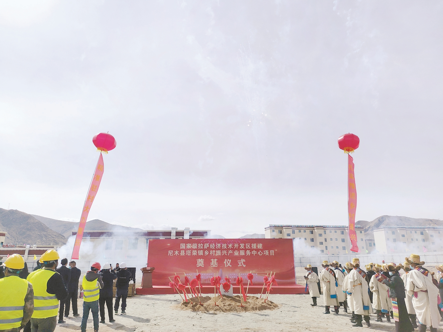 3月20日,拉薩經(jīng)開區(qū)援建尼木縣塔榮鎮(zhèn)產(chǎn)業(yè)服務(wù)中心項(xiàng)目奠基儀式舉行。圖為奠基儀式現(xiàn)場。 拉薩融媒記者 李從芳攝