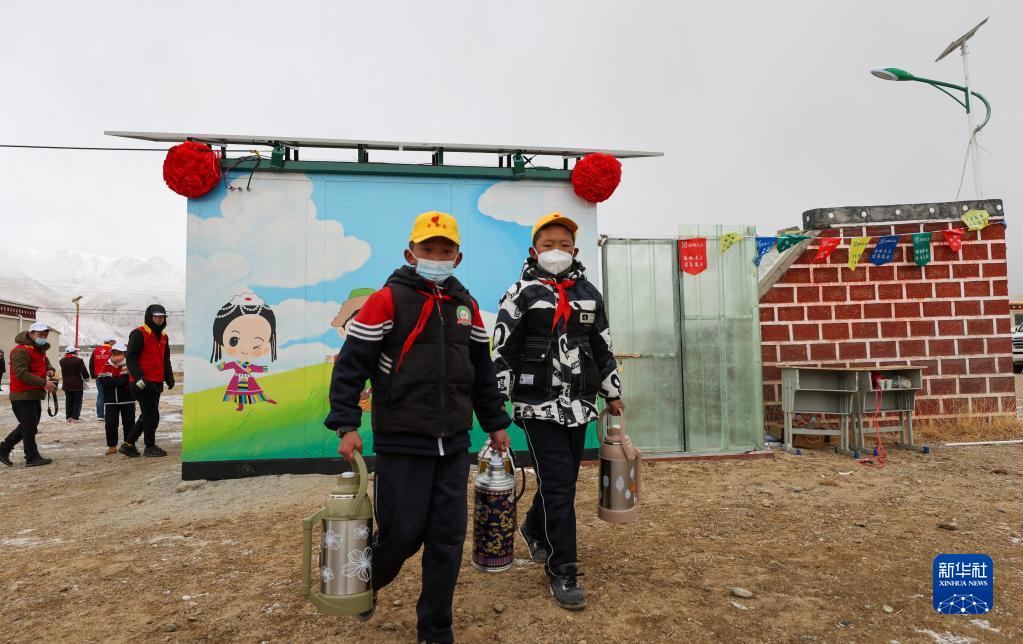 3月21日,那曲市色尼區(qū)香茂鄉(xiāng)小學的同學們在新啟用的凈水站打水。新華社記者 姜帆 攝