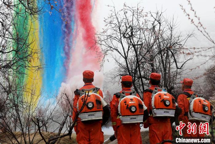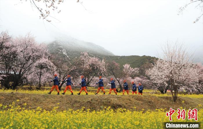 林芝市森林消防支隊指戰(zhàn)員穿梭在桃林中,對景區(qū)重點部位和消防設(shè)施進行消防巡查,及時應(yīng)對可能發(fā)生的突發(fā)事件,做好滅火救援各項準備工作。