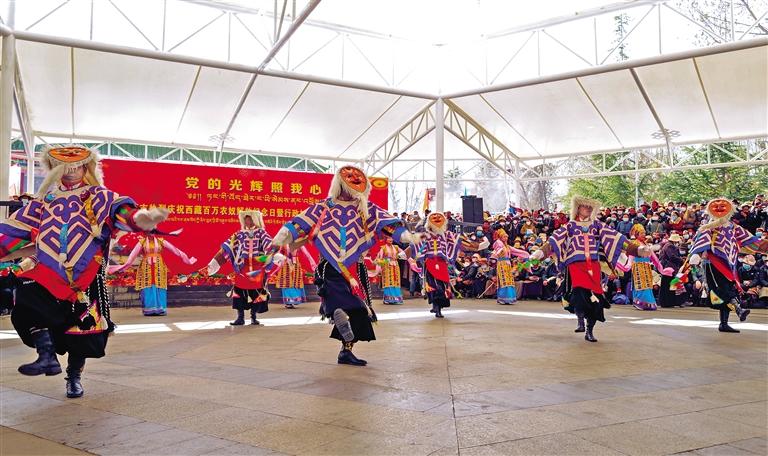 連日來,拉薩市城關(guān)區(qū)、堆龍德慶區(qū),山南市瓊結(jié)縣、那曲市班戈縣分別舉行紀(jì)念西藏百萬農(nóng)奴解放64周年文藝表演。優(yōu)美的歌聲、熱情的舞步,不時(shí)贏得在場(chǎng)觀眾的陣陣喝彩??赐暄莩?,群眾益西旦增激動(dòng)地說:“64年來,西藏發(fā)生了翻天覆地的變化,我們的生活越來越好,大家從內(nèi)心深處感謝黨和國(guó)家?!?/p>