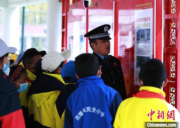 27日下午,60多名學(xué)生在老師帶領(lǐng)下走進(jìn)吉隆邊檢站警營,師生在移民管理警察引導(dǎo)下參觀警營文化長廊、警史館和閱覽室,觀摩警棍、盾牌、槍支等警用裝備,觀看西藏發(fā)展變化教育片,聆聽新舊西藏對比相關(guān)故事。