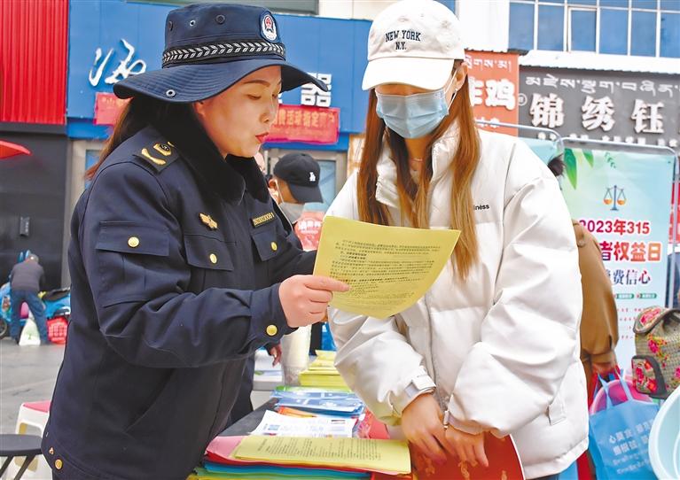 圖為今年“3·15”期間,山南市監(jiān)局工作人員向市民宣講消費者權(quán)益保護知識。劉楓 攝
