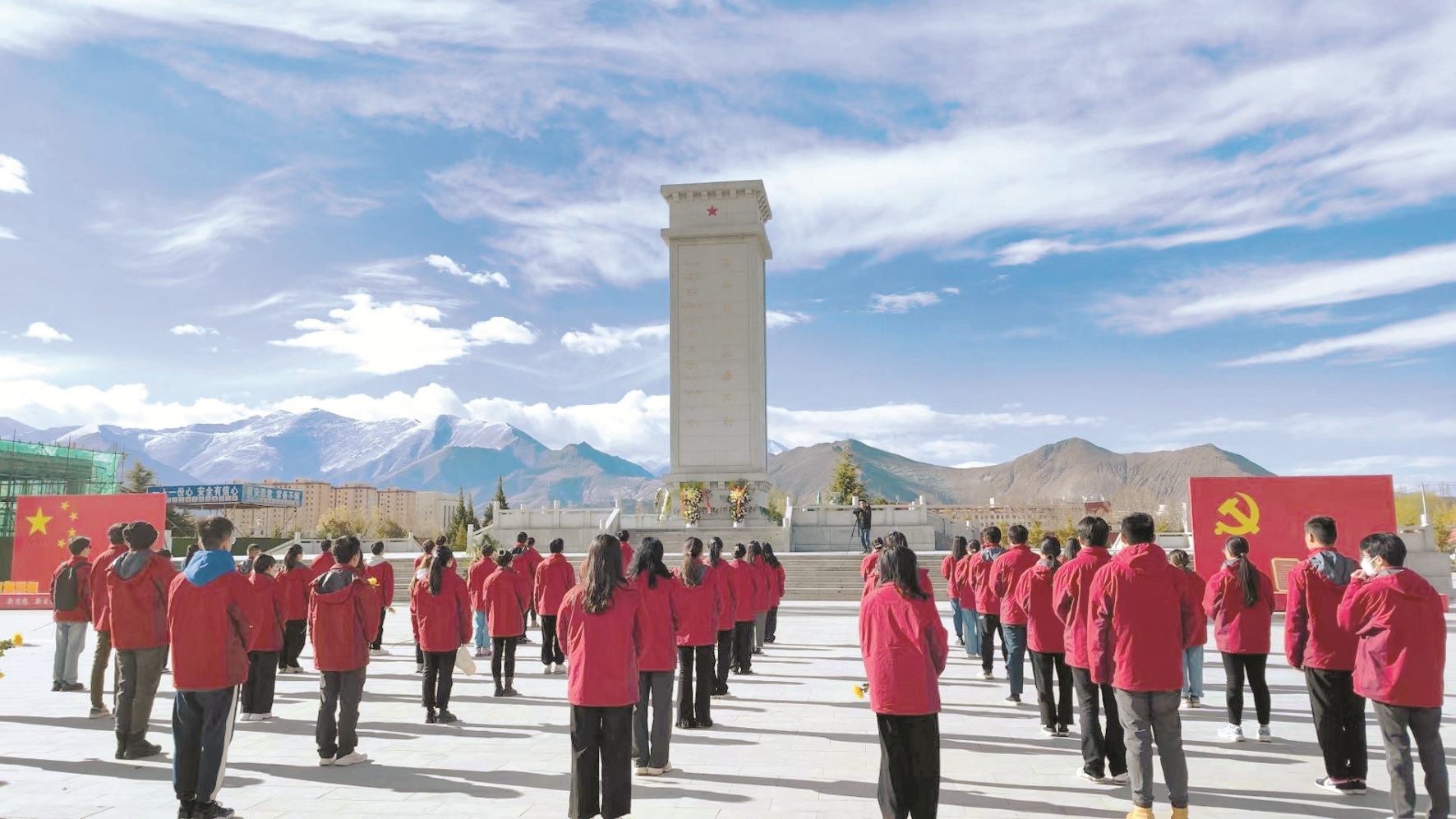 鮮花寄哀思,傳承慰英魂?;顒?dòng)現(xiàn)場,90余名“西部計(jì)劃”西藏專項(xiàng)志愿者身著紅色志愿服,手持黃色菊花,向革命先烈集體默哀,并瞻仰革命烈士紀(jì)念碑向革命先烈敬獻(xiàn)花籃,表達(dá)對(duì)革命先烈的無限崇敬之情和深情哀思。