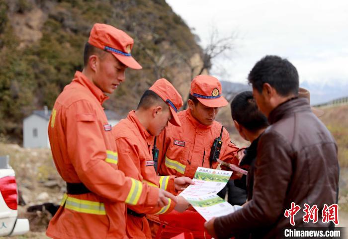 森林消防隊(duì)員在祭祀?yún)^(qū)域開展防火宣傳?!∥骼@拉翁 攝