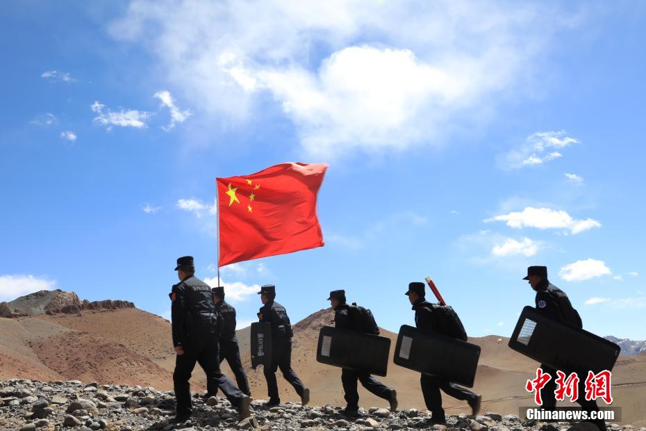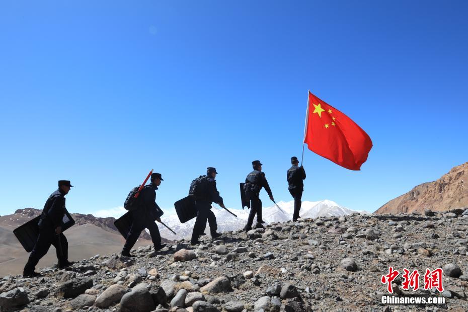 近日,西藏阿里邊境管理支隊扎西崗邊境派出所組織民警和護邊員通過乘車巡邏和徒步巡邏相結合的方式,前往海拔4800米的“守邊固邊第一村”——典角村古格川執(zhí)勤點巡邏,經(jīng)過一個小時的車巡和一個小時的徒步巡邏,民警到達了古格川執(zhí)勤點。通過巡邏,及時掌握了邊境一線情況,確保了邊境轄區(qū)安全穩(wěn)定。圖為民警與國旗合影。郭遠敬 攝
